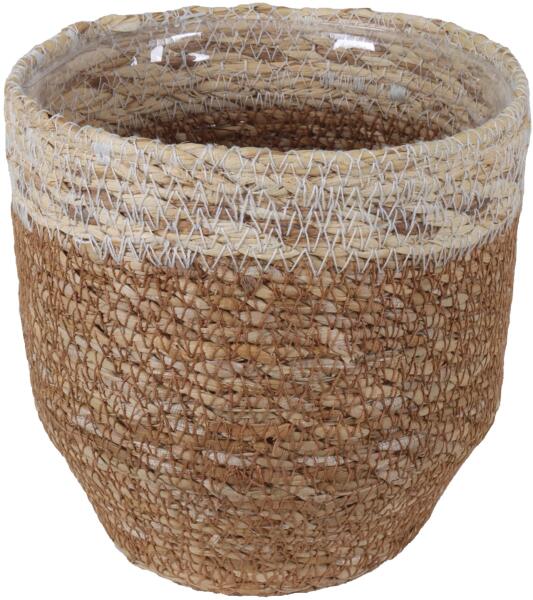 Az A. H. G. Hogla-fűből készült, műanyag tasakos kaspó sokoldalú növény- és tárolókosár, amely 18 cm x 18 cm méretben kapható. Fenntartható módon termesztett Hogla-fűből készült, és natúr-bézs színösszeállításával tűnik ki. Ez a kaspó különböző növények virágkosaraként, valamint takarók, törölközők, játékok, sálak és egyéb tárgyak dekoratív tárolására is alkalmas. A kosár színes kontrasztja vonzó megjelenést kölcsönöz, és vizuális csúcsponttá teszi, amely tökéletesen illeszkedik a boho stílushoz. Modern kialakításával és természetes anyagaival ez a kaspó ideális a ház különböző területeire, például a nappaliba, a fürdőszobába, a gyerekszobába vagy a bejárathoz. A beépített poliészter tasak védelmet nyújt a nedvesség ellen, de szükség esetén könnyen eltávolítható. Kérjük, vegye figyelembe, hogy a természetes anyagok miatt kis eltérések előfordulhatnak a termék képéhez képest.