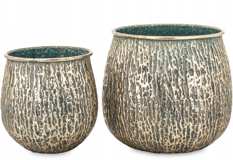 Art-Pol Virágtartó fedél szett 2 db arany zöld fém boho retro szett (168314)