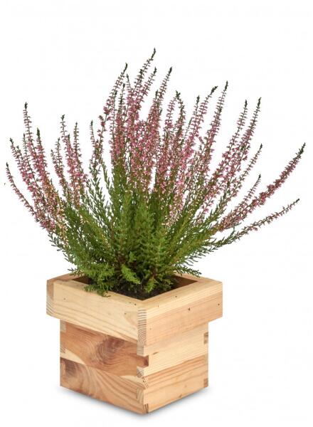 Fából készült virágcserép, amely végtelen lehetőséget biztosít a díszítéshez.