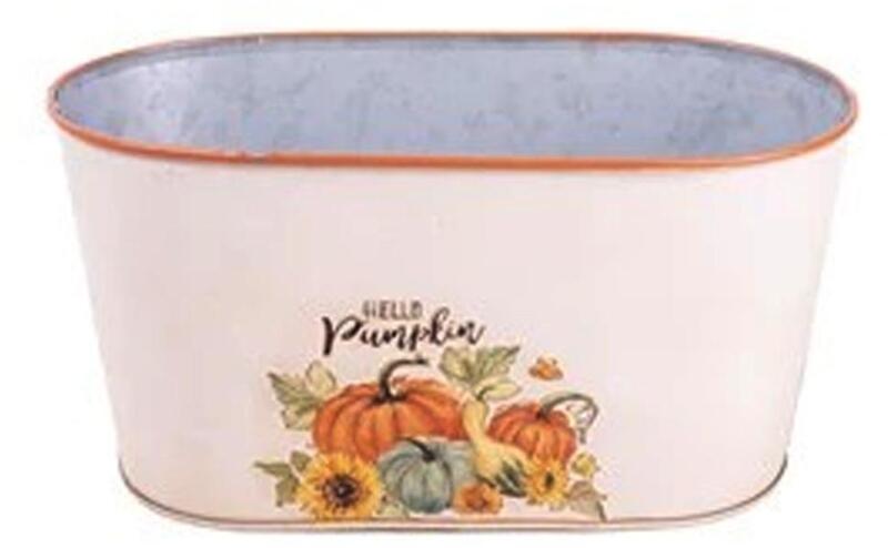Bádog kaspó, ovális, tökök, krém narancssárga