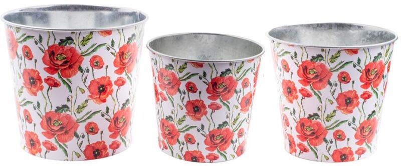 Bádog kaspó szett piros pipacs