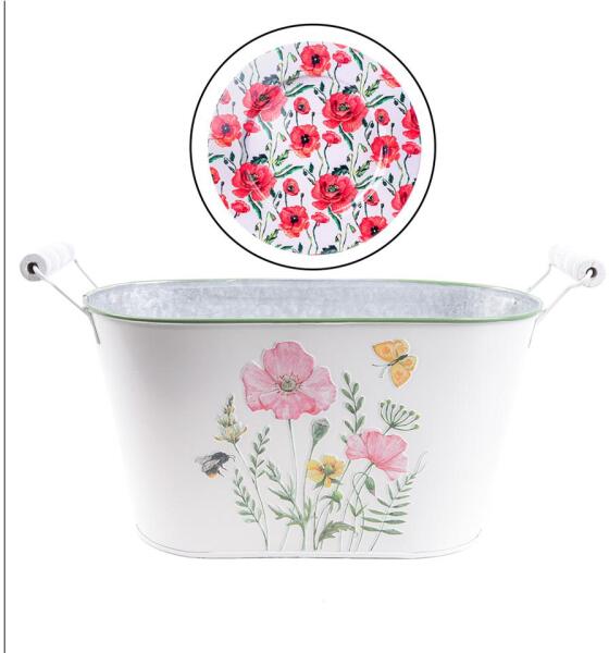 Bádog kaspó virágos füles - csemegeboltom - 2 548 Ft