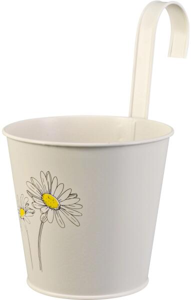 A cink felakasztható cserép tavaszias pasztellszínekkel porlakkozott és virágmintával díszített. Univerzálisan használható bel- és kültéren egyaránt, és ideális konyhai gyógynövények és virágzó növények ültetésére. Méretei - Magasság: 14,6 cm - Átmérő: 16 cm