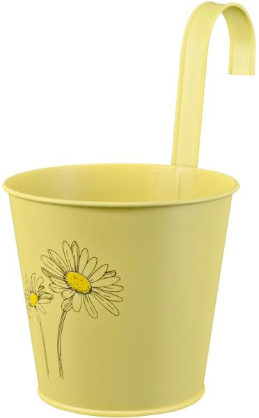 Cink felakasztható cserép lakk. virágminta sárga 14, 6 cm x 16 cm
