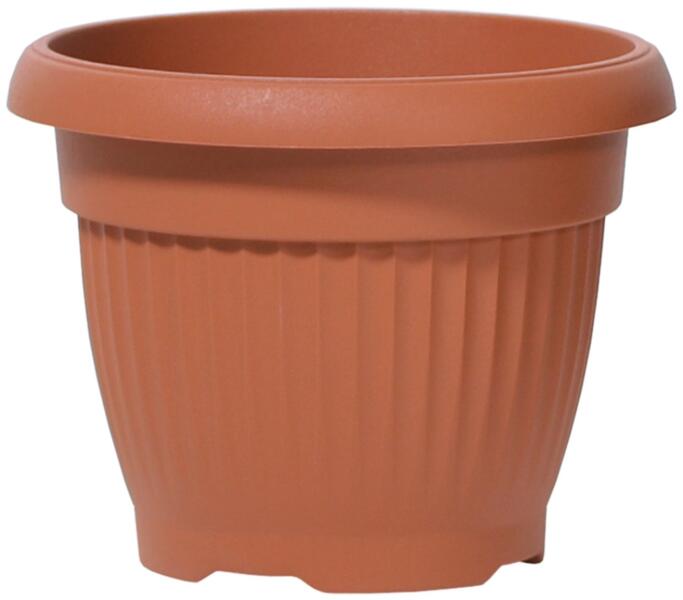 Klasszikus megjelenésű, bordázott falú cserép erős, minőségi műanyagból, kültéri használatra. Természetes, terrakotta-színű, jól mutat kertben, teraszon vagy akár ablakban egyaránt. Széles méretválasztékának köszönhetően számos különféle növény beültetésére alkalmas.