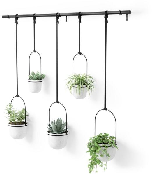 Umbra Triflora Függő Virágtartó - Stílusos zöld otthonodért! ? Az Umbra Triflora függő virágtartóval egyedi és modern módon díszítheted otthonodat növényekkel. Ez a stílusos kiegészítő nem csupán a növényeidnek ad helyet, hanem a lakásod dísze is lesz. Akár a falra, akár a mennyezetre szerelve, a Triflora elegáns és helytakarékos megoldást kínál a zöld növények bemutatására. Főbb jellemzők:Állítható magasság: A növénytartók magassága igény szerint állítható, így tökéletesen illeszkedik a térhez. Modern stílus: A fehér és acél kombinációja modern és letisztult megjelenést biztosít. Könnyű szerelés: Egyszerűen felszerelhető a falra vagy a mennyezetre. Tartós anyagok: PBT és acél felhasználásával készült, így hosszú élettartamú. Méretek: Hosszúság: 138 cm Szélesség: 18 cm Magasság: 95 cm Az Umbra Triflora virágtartóval könnyedén zöldebbé és otthonosabbá teheted a környezetedet. ?