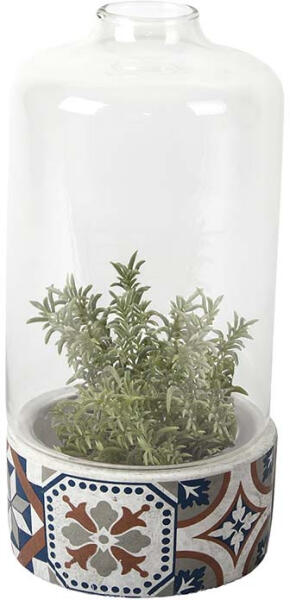 Esschert Design Mediterrán stílusú kerámia virágcserép üvegbúrával, portugál mozaik mintával, kültéri és beltéri dekorációs kiegészítő (AC180) - kertesotthonbolt