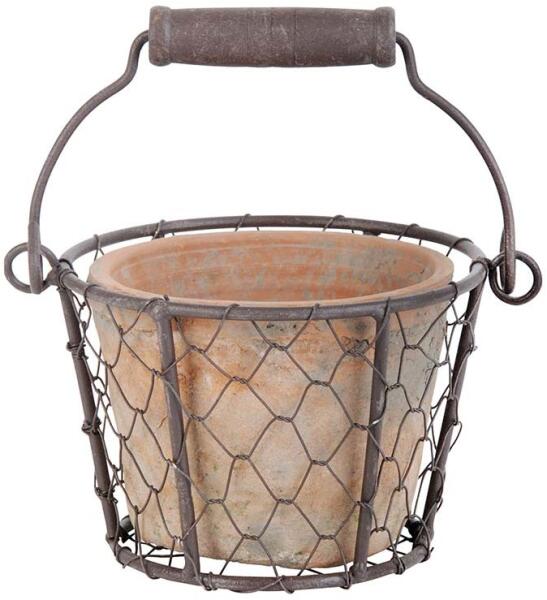 Esschert Design Terrakotta virágcserép drót kosárban, fogantyúval (AT09)