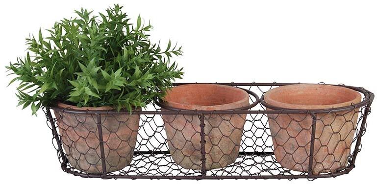 Esschert Design Terrakotta virágcserepek drót kosárban (AT11)