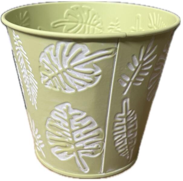 Fém kaspó levél mintával 12 cm, zöld