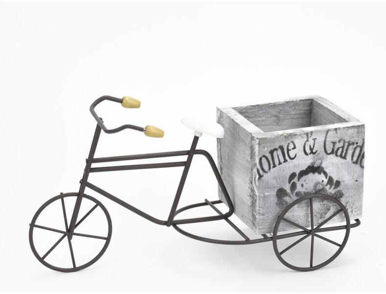 Virágtartó fém tricikli, fa kaspóval, kis méretű növényekhez. Kiváló ajándék lehet a biciklik illetve a virágok szerelmeseinek.