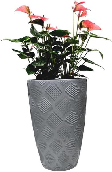 Szürke kaspó 60 cm – UV stabil, prémium minőségű virágkaspó Ez a szürke kaspó modern és elegáns választás minden otthonba vagy kertbe. UV stabil polietilén műanyagból készült, amely ellenáll az időjárás viszontagságainak, így hosszú élettartamot biztosít. A kaspó dombormintás külső kialakítása dekoratív megjelenést nyújt, míg a kivehető fekete ültetővödör megkönnyíti a növények ültetését és gondozását. Virágkaspó – termékadatok