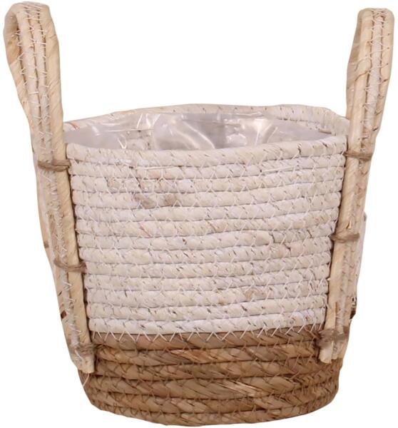 Ez a szőtt tengeri fűből készült ültető- és tárolókosár négy különböző méretben kapható, és a kontrasztos színnek köszönhetően vizuálisan kiemeli. A felhasznált hínár fenntartható termesztésből származik. A kosár alkalmas növényi kosárként kedvenc növényei számára, vagy egyszerűen dekoratív tárolóként takarók, törölközők, játékok, sálak és egyebek számára. A természetes anyagok a természetes tónusokkal kombinálva modern megjelenést kölcsönöznek a kosárnak, és tökéletesen illeszkednek a boho stílushoz. A kosár tökéletes a nappaliba, a fürdőszobába, a gyerekszobába vagy az előszobába. A nedvesség elleni védelem érdekében a kosarakban beépített műanyag tasak található, amely szükség esetén szintén könnyen eltávolítható. A rattanhoz képest a tengeri fű anyaga puhább és rugalmasabb. Mivel természetes termékről van szó, a termék képétől kis eltérések lehetségesek.