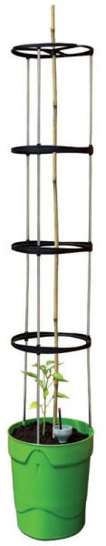Nagyvonalú, 11 literes kapacitás a növények egészséges fejlődéséhez. Könnyen feltölthető öntözőrendszer 4 literes tartállyal. Stabil, 4 gyűrűs, 1,5 m magas alumíniumkeret, amely biztonságosan illeszkedik a cserépbe. Az összeszerelés percekbe telik. 100%-ban újrahasznosított műanyagból készült (BPA-mentes). Mind az ültetőedény, mind a keret rendelkezik "horgonyzó" tartóval az opcionális középső bambusz bothoz (a bot nem tartozék). Egyedi úszó kijelző mutatja a tartályban lévő vízszintet. Ideális paradicsom, paprika, cukorborsó és egyéb növények számára. 3 színben kapható, zöld, piros és antracit színben.