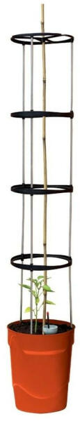 Nagyvonalú, 11 literes kapacitás a növények egészséges fejlődéséhez. Könnyen feltölthető öntözőrendszer 4 literes tartállyal. Stabil, 4 gyűrűs, 1,5 m magas alumíniumkeret, amely biztonságosan illeszkedik a cserépbe. Az összeszerelés percekbe telik. 100%-ban újrahasznosított műanyagból készült (BPA-mentes). Mind az ültetőedény, mind a keret rendelkezik "horgonyzó" tartóval az opcionális középső bambusz bothoz (a bot nem tartozék). Egyedi úszó kijelző mutatja a tartályban lévő vízszintet. Ideális paradicsom, paprika, cukorborsó és egyéb növények számára. 3 színben kapható, zöld, piros és antracit színben.