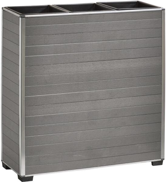 A Gartenfreude virágtartó klasszikusan elegáns kialakításával nyűgöz le. Kiváló minőségű, szálkamentes WPC-ből készül, és a gyönyörű alumínium perem segítségével dekoratív hangulatot teremt kül- és beltéren egyaránt. A virágtartó időjárásálló, UV-álló és vízálló műanyag betéttel rendelkezik. A fenntartható és ökológiai termesztést egy gyorsan megújuló nyersanyag, a bambusz garantálja. Ezenkívül ideálisan használható térelválasztóként is. A Gartenfreude virágtartót alkalmanként szappanos vízzel lehet tisztítani, makacs szennyeződések esetén szennyeződés- és zsíroldó vagy speciális WPC tisztítószereket kell használni. Igény esetén a WPC deszkák színe festékkel felfrissíthető.