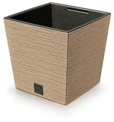 A belső betétes, négyzet alakú virágcserép beltérre és kültérre is egyaránt alkalmas. Gyártási alapanyaga: 67 % műanyag és 33 % fa.