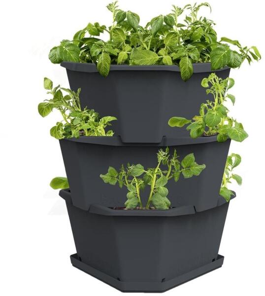 Gusta Garden PAUL POTATO önöntöző 3 szintes virágcserép, antracit (GG-100351)