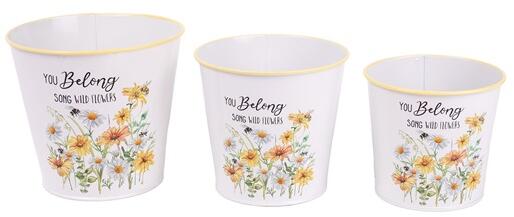 IRIS bádog kaspó, 3 darabos, margaréta mintás, fehér 15 x 11, 5 cm 081114 (081114)