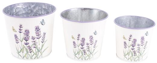 IRIS bádog kaspó, 3 darabos szett, levendula mintás, fehér 15-11, 5 cm (081100) - officedepot