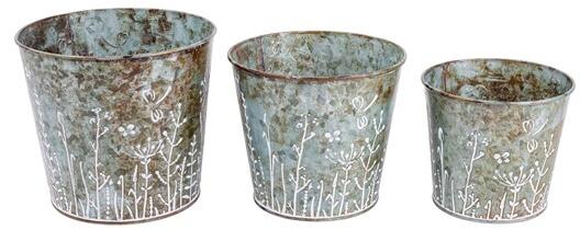 IRIS bádog kaspó, 3 darabos szett, pitypangos, rozsdás 11-15 cm (081087) - officedepot
