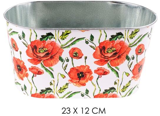 IRIS bádog kaspó ovál pir pipacs 23x12cm (81044) - oneclick