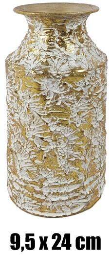 IRIS bádog váza, arany, fehér nyomott mintás 9, 5 x 24 cm (80926) - officedepot