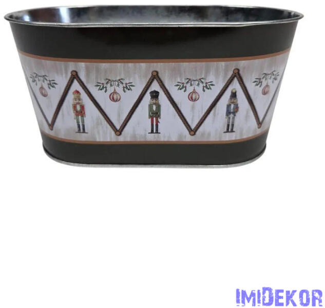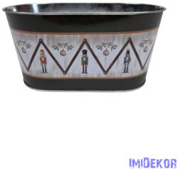 Karácsonyi mintás bádog kaspó ovál - Diótörő figura