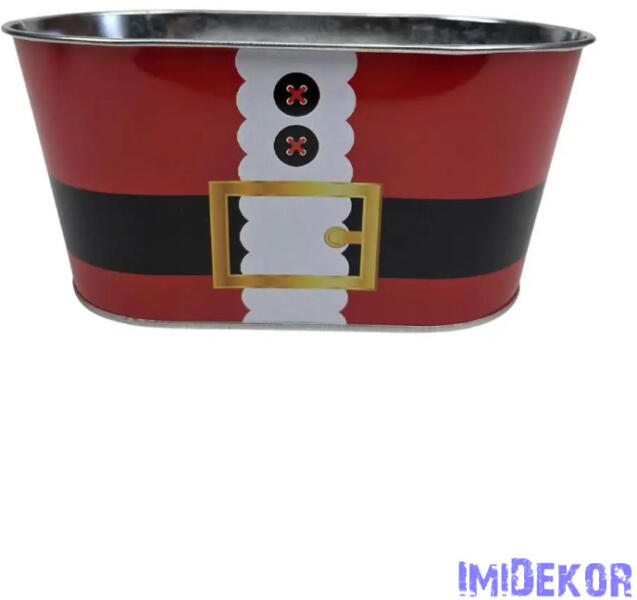 Karácsonyi mintás bádog kaspó ovál - Mikulás öv