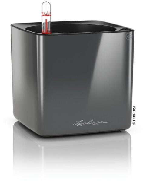 Cube Glossy kaspó Önöntözős szett Szín: antracitElhelyezés: beltéri Forma: szögletes Beültethető cserépméret: 8 cm - 12 cm Méret: 14 x 14 x 14 cm Anyaga: műanyag