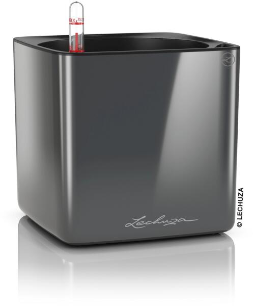 Lechuza Cube Glossy virágtartó 16 antracit magasfényű 17 cm x 17 cm