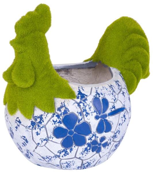 Varázsoljon eleganciát és rendezettséget kertjébe! A Kakas kerámia kerti dekoráció kék dísszel és fuutánzat borítással minden külso teret megszépít. Ültesse kedvenc virágát a dekorációba. Méretek: 34,5 x 24 x 30,5 cm.
