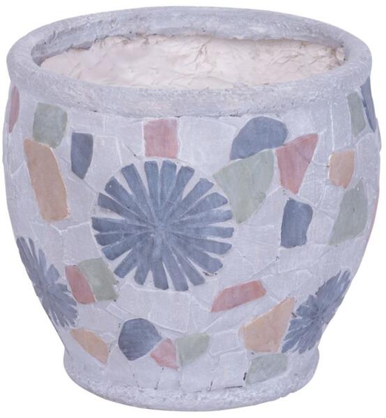 MagicHome dekoráció, Virágcserép mozaikkal, szürke, kerámia, 27, 5 x 27, 5 x 25 cm