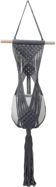 A kézzel készített, világosszürke színű makramee függő kaspótartó 82 cm magas, kerámia kaspókhoz ideális (20 cm x 17 cm), teherbírása pedig 3 kg (a képen látható kaspó nélkül). A függő kaspótartó különböző modern színekben kapható.