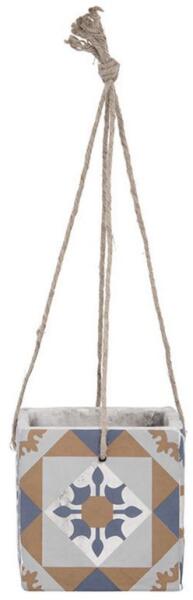 Mediterrán kerámia akasztós cserép, 13x13cm Mediterrán stílusú, mozaik mintájú, kerámiából készült nagy méretű, függő virágcserép. Kül- és beltéri használatra egyaránt alkalmas, így teraszokra, erkélyekre, kisebb virágok, vagy dísztárgyak tárolására is használható. Különleges lisszaboni mintája figyelemfelkeltő megjelenést nyújt a virágcserépnek! Válaszd ezt a cserepet és varázsolj vele még otthonosabb hangulatot lakásodba. A cserép alján nem található vízkivezető nyílás. A termék nem fagyálló!