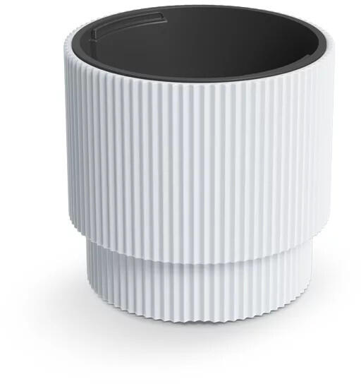 Hengeres formájú, bordázott felületű elegáns virágcserép, amely tökéletes modern belső terekbe, teraszokra és kertekbe is.