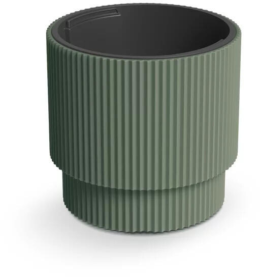 Hengeres formájú, bordázott felületű elegáns virágcserép, amely tökéletes modern belső terekbe, teraszokra és kertekbe is.