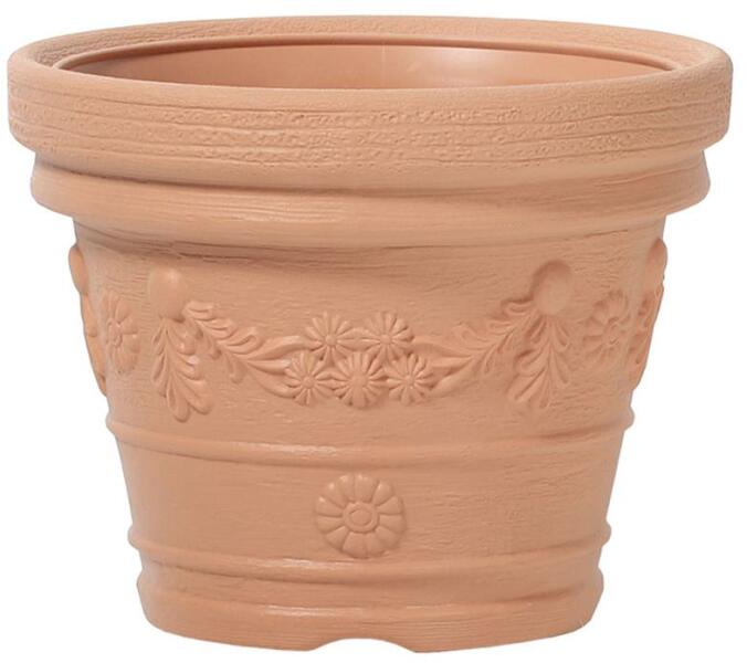 A klasszikus Decora virágcserép terrakotta színu virágdekorációval megszépíti otthonát. Méretek: 390 x 310 mm.
