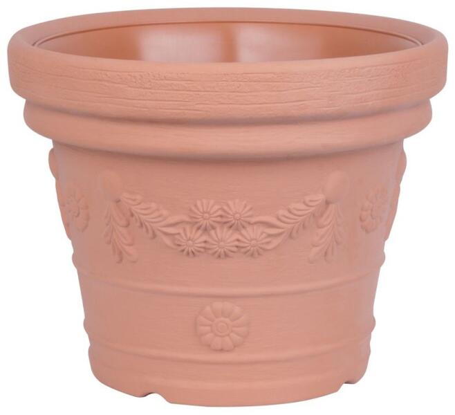 A klasszikus Decora virágcserép terrakotta színu virágdekorációval megszépíti otthonát. Méretek: 570 x 455 mm.