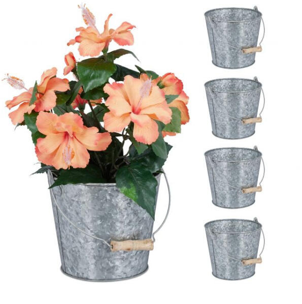 Relaxdays Vödör alakú virágcserép cink 5 db-os szett 10037398