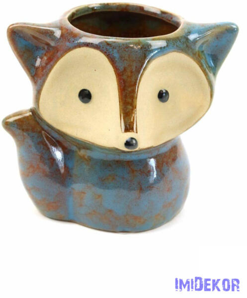 Rókás kerámia kaspó - Kék