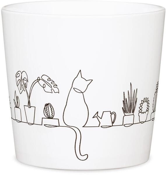 A Scheurich 870 12,8 cm x 11,8 cm Catview kaspó megdobogtatja a macskabarátok szívét: A finoman megrajzolt illusztráció a házi tigrisek életéből ragad ki egy tipikus jelenetet. Friss macskafűvel együtt tökéletes ajándék - magadnak és más szőrös barátoknak. Valamennyi Scheurich kerámia kaspó garantáltan 100%-ban vízzáró és made in Germany minőségű.