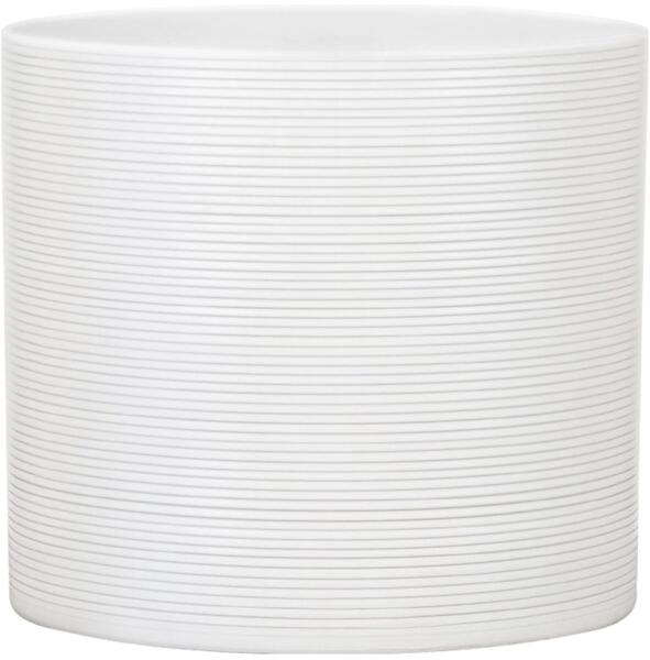 A Scheurich 828 kaspó kerámiából készült. A hengeres testen szabályos, apró harántbarázdák láthatók, melynek köszönhetően a kaspó bármilyen szögből élettelinek látszik. Átmérője: 12 cm, színe: fehér