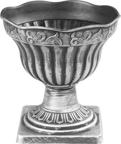 A fémhatású, antik stílusú Antik ültetőtartó egész évben használható kül- és beltéren, erkélyen, teraszon vagy kertben. Kiváló minőségű, könnyen mosható anyagból készült, fagy- és időjárásálló. Méretek: 30x30 cm. Szín: ezüst.