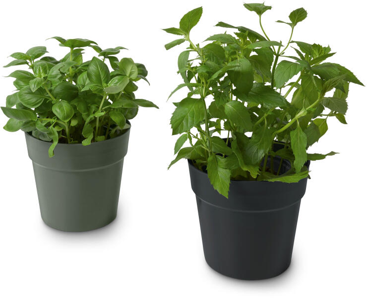 2 kaspó fűszernövényekhez Szín: 1x olivazöld, 1x szürke-fekete Anyag: 100% műanyag (újrahasznosított) Méretek: Ø egyenként: kb. 14 cm Magasság: egyenként kb. 12,5 cm Töltőtömeg: Egyenként kb. 1,3 l Metélőhagyma, bazsalikom, petrezselyem stb. termesztéséhezA kereskedelmi forgalomban kapható fűszernövénycserepekhez megfelelőTökéletesen megfelel ablakpárkányon, balkonon vagy teraszon való elhelyezésreÁtmérőjük egyenként: kb. 14 cmÚjrahasznosított anyagból