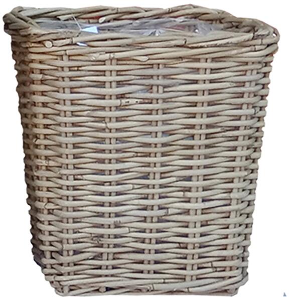 Természetes rattan szögletes cserép szürke műanyag béléssel 21 x 21 x 25 cm