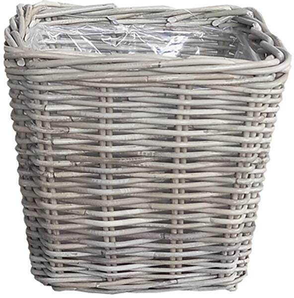 Természetes rattan szögletes cserép szürke műanyag béléssel 28 x 28 x 28 cm