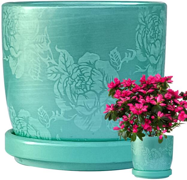 Tragar 12x10 cm-es Kerámia Cserép Virág Aláttéttel, Szép Zöld (WWWW)