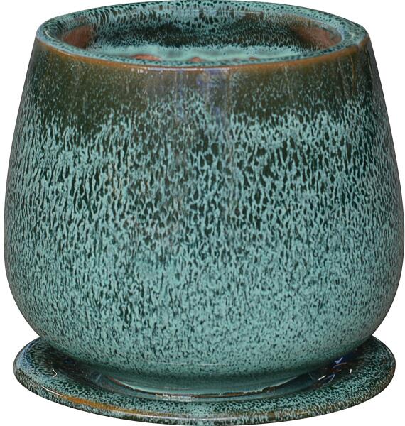 Ez a virágcserép kisméretű növényekhez alkalmas. Beltéren használható, és jól mutat egy komódon, tálalón vagy polcon. Átmérője 14,5 cm. Formatartó kerámiából készült. A cserép zöld árnyalatú modern kialakítása önmagáért beszél. Alátéttel felszerelt, amely megakadályozza, hogy kifolyjon a víz.