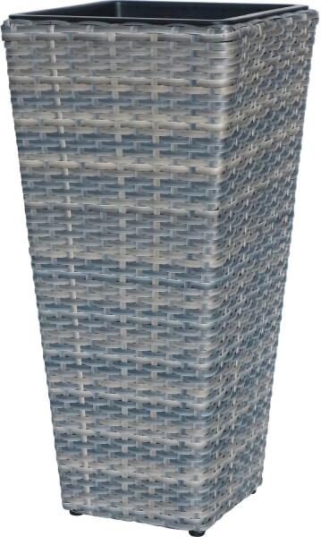 Ez a váza alakú virágcserép egyaránt alkalmazható bel- és kültéren is. Tetszés szerint ültethető be szobanövényekkel vagy kintre szánt cserjékkel, és szemet gyönyörködtető látványt nyújt a teraszon vagy az előtető alatt. A kúp alakú váza polirattanból készült, és Wave színárnyalatú. Strukturált felülete természetes, fonott megjelenéssel bír. Anyaga időjárásálló és -10 °C-ig fagyálló. Ezáltal alkalmas arra, hogy télre is a szabadban maradjon. Azonban a pangó víz elkerülése érdekében tetővel fedett helyre helyezze. A kivehető műanyag betét egyszerű ültetést tesz lehetővé. A tartó 60 cm magas, és 28 cm x 28 cm (Sz x Mé) méretű négyzetes alapterülettel rendelkezik.